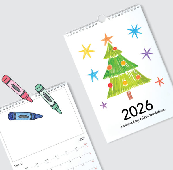 The cover is printed with your child’s design, the inner pages have a blank area to be filled with the flavours of the season, lambs in spring to crunchy brown leaves in the Autumn, whatever your artist dreams up! Ideal for home and for grandparents to join in the fun when staying over.