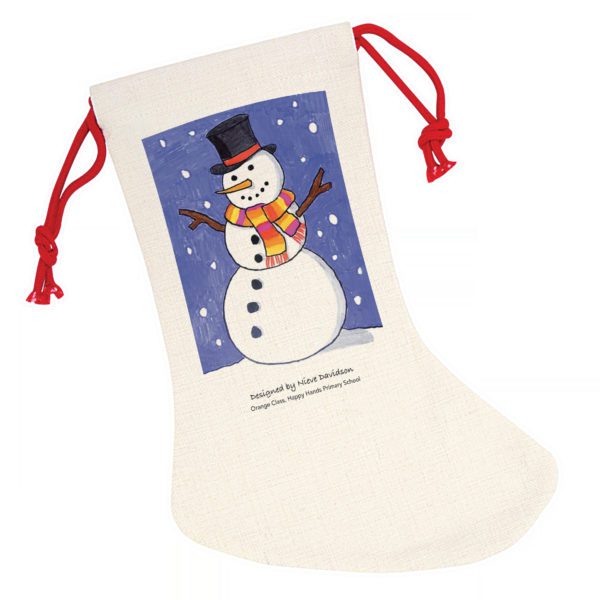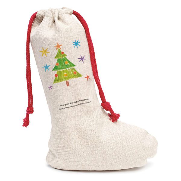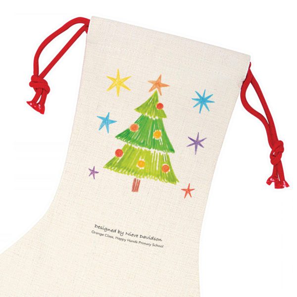 A big stocking at 44cm tall x 30cm at widest point. Printed full colour to one side.